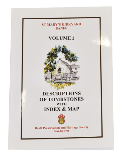 Published by Banff Preservation and Heritage Society, is designed to supplement ‘St Mary’s Kirkyard Banff’. This book provides two immediately useful tools, a map of the kirkyard with Cramond’s numbers identifying the stones, and an index of every name on the stones. Additional observations that describe each stone and show additions to the original inscriptions as well as some stones not previously catalogued make this an invaluable guide for family history research.