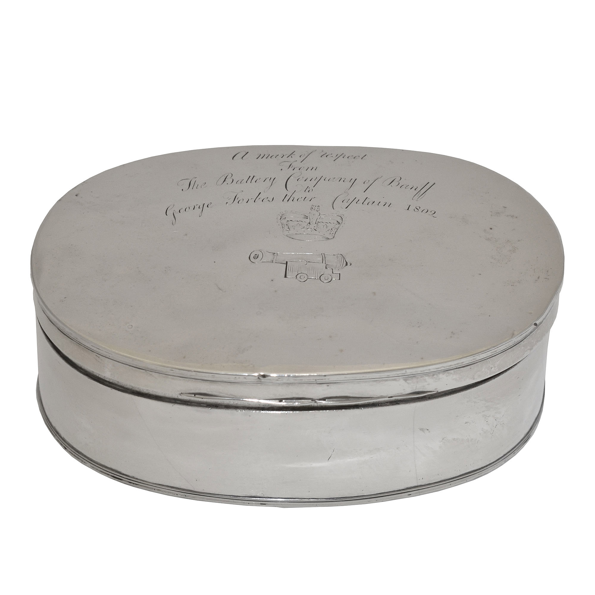 Local Militia in 1808 and were disbanded in 1816 after the end of the Napoleonic War. George Forbes received this snuff box from his men