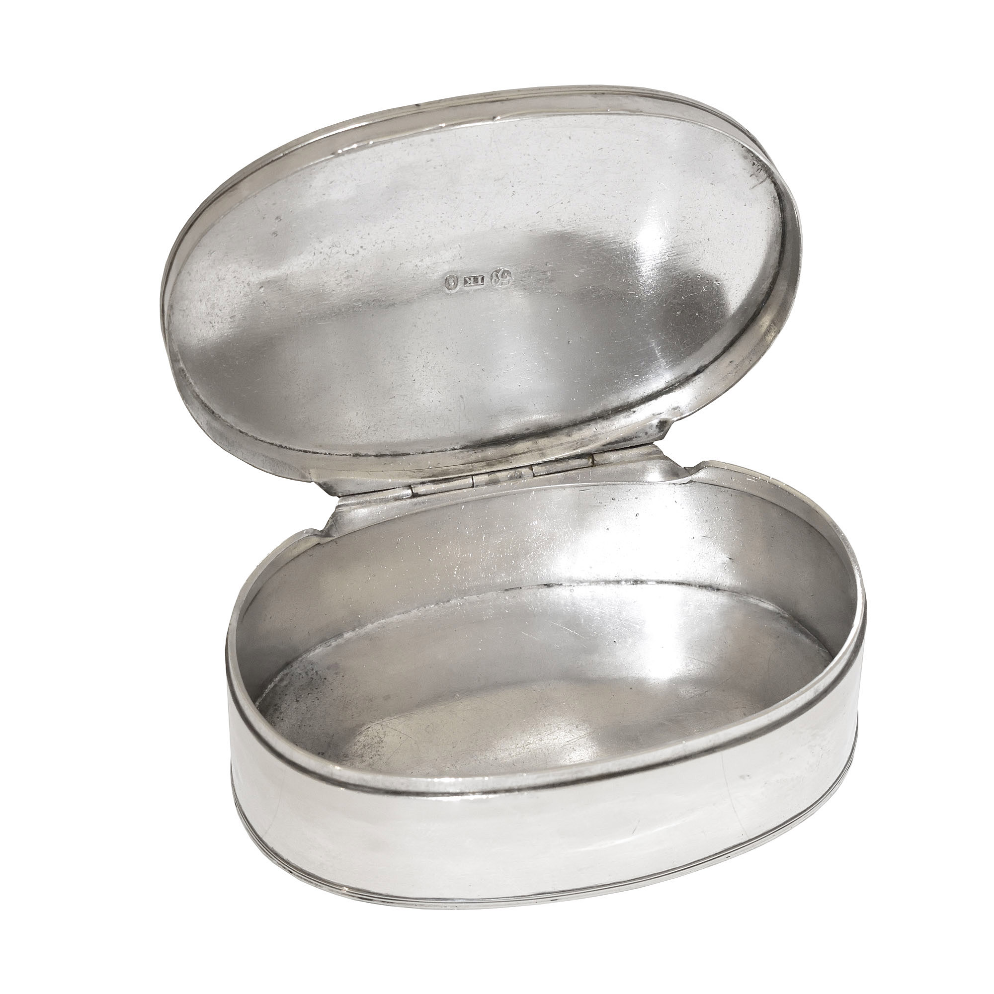 Oval-shaped snuff box, bearing the inscription: