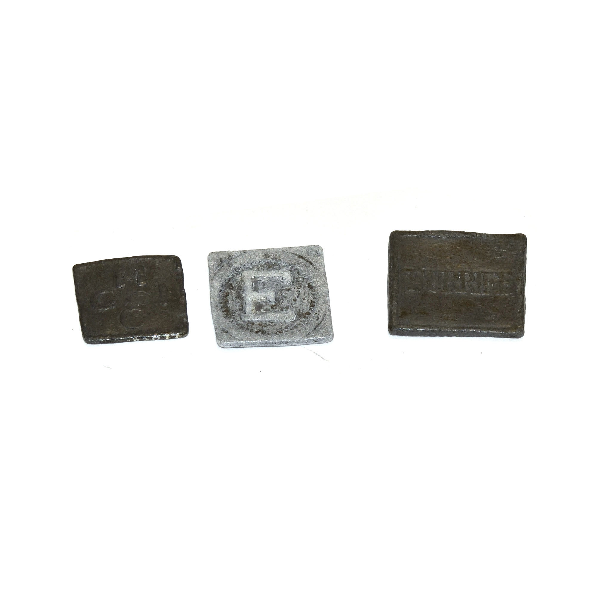 Three communion tokens from the 18th and 19th centuries, from the local area. In order to receive communion, you had to have a communion token.