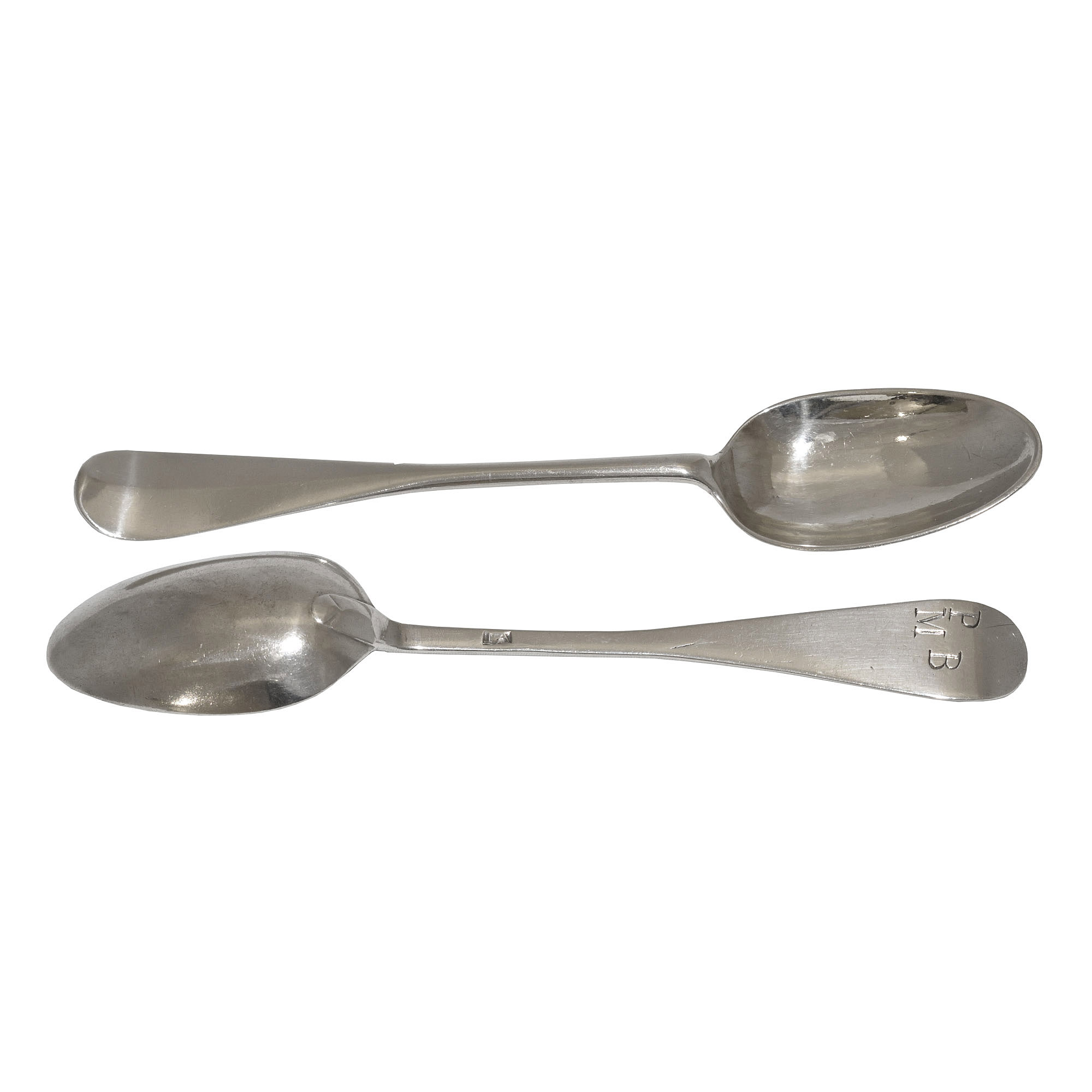 The two teaspoons with the initial PMB are by John Argo.